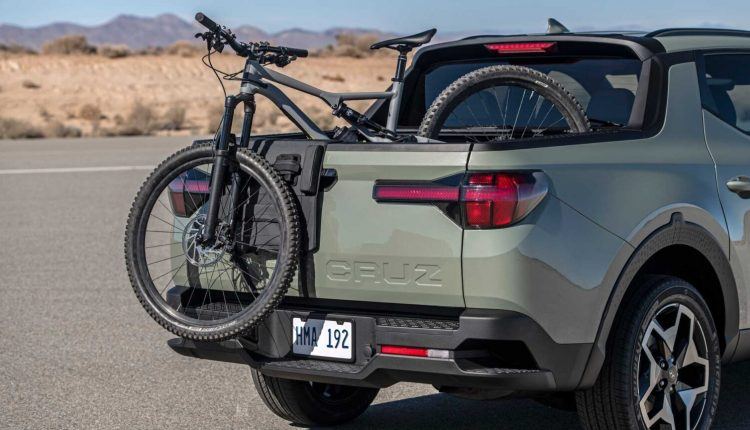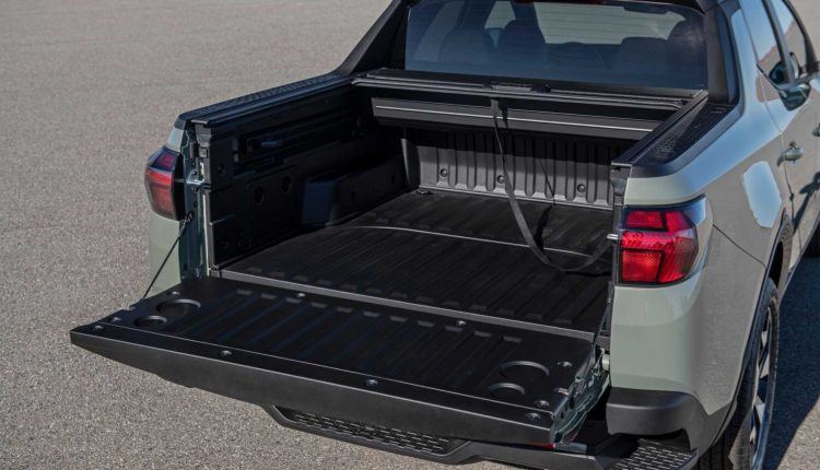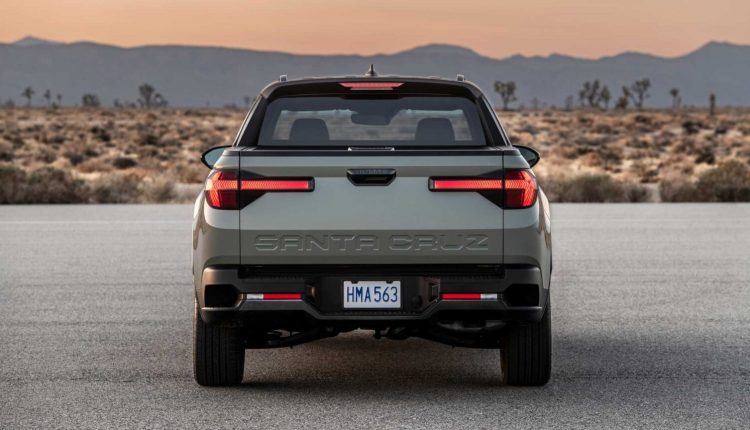 هيونداي سانتاكروز لديها مقدمة مستوحاة من توسان 2022، خاصة في تصميم الشبك والمصابيح النهارية، مع صندوق خلفي بطول 132.3 سنتيمتر، ويحتوي الصندوق على مساحة تخزينية مخفية مع إمكانية إطالة الصندوق باكسسوارات مختلفة.