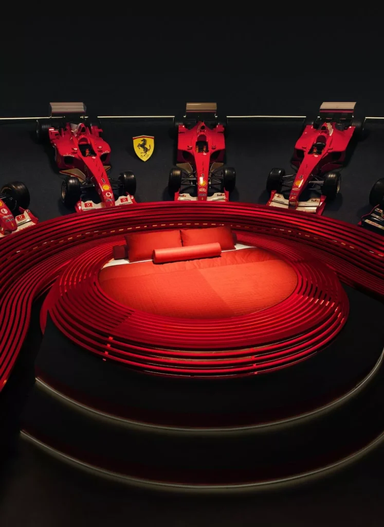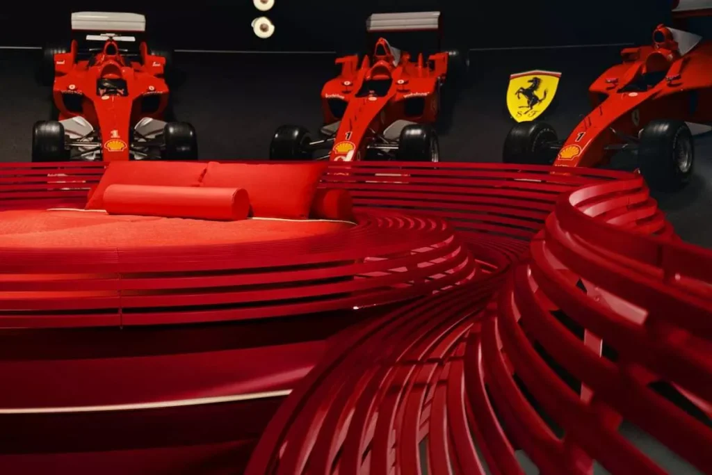 ترتيبات المكان فريدة من نوعها، حيث قامت فيراري بتوفير سرير دائري وسط إحدى قاعاتها الفخمة، باستخدام نفس الجلد الموجود في مقاعد سيارات السباق التقليدية التابعة للشركة.