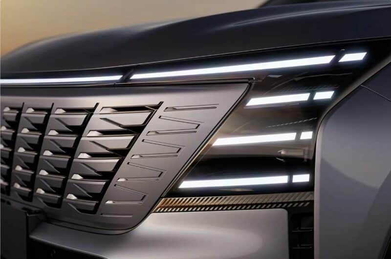 بالإضافة إلى ذلك، عجلة القيادة تأتي بقضبان مزدوجة، ومقعد مساعد الطيار مصنوع من مادة مقاومة للجاذبية لراحة إضافية. تم تزيين أسطح المقاعد والأبواب بتصميمات مثقبة لإضفاء لمسة أنيقة ومميزة. كما تم دمج شريط إضاءة ممتد أسفل الشاشة الثلاثية لتحسين الأجواء الداخلية وإضفاء مظهر حديث.