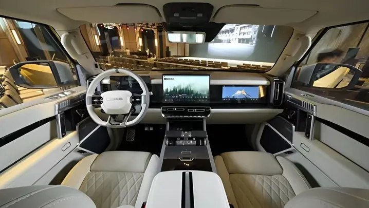 كما تحتوي السيارة على فرش من جلد نابا، ومقاعد أمامية قابلة للتعديل إلكترونيًا ومدفأة، ونظام صوتي مكون من 16 مكبر صوت، بالإضافة إلى أنظمة لتنقية الهواء والعطور، وشاشة مركزية للركاب في الخلف، ووفقًا لموقع CarNewsChina، تأتي السيارة كنسخة كهربائية بالكامل من سيارة هجينة تعمل بنظام موسع النطاق، يضيف نظام موسع النطاق محرك بنزين توربو سعة 1.5 لتر لشحن البطارية، ولكنه لا يقوم بتحريك العجلات.