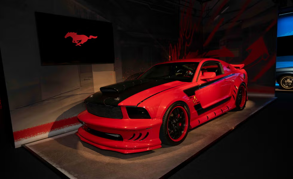 وفي القسم التالي، ينتقل الزوار إلى الحاضر ليشاهدوا سيارة موستانج دارك هورس الحديثة على منصة دوارة ضمن عرض تفاعلي مليء بالإثارة والمؤثرات البصرية. أما عشاق السرعة، فسيجدون في القاعة المجاورة عرضًا مميزًا لسيارة موستانج GTD، إلى جانب معرض صغير يضم سيارات موستانج الشهيرة من الأفلام مثل “إلينور” من فيلم *Gone in 60 Seconds، والسيارة البوليسية Barricade من *Transformers، وRed Mist من Kick-Ass.