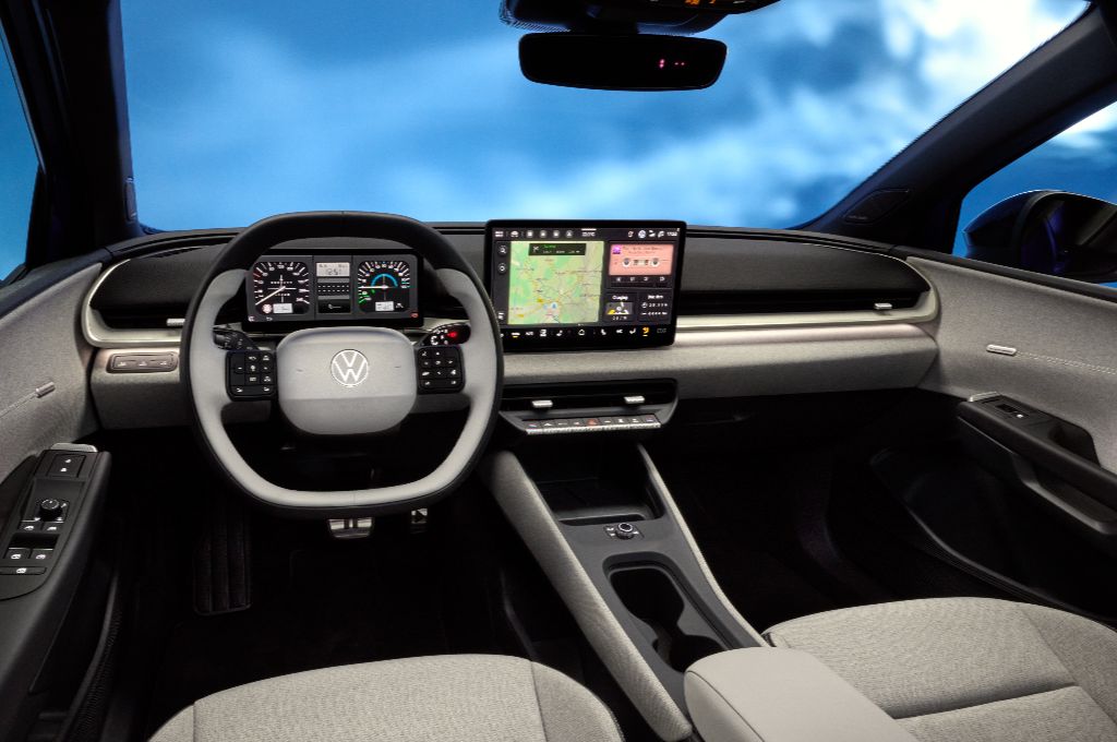 تأتي السيارة بعجلة قيادة مربعة نسبيًا ذات تصميم غير تقليدي، لكنها مزودة بأزرار كبيرة وسهلة الوصول. كما تضم لوحة القيادة صفًا من مفاتيح التحكم الفيزيائية بالمناخ، بالإضافة إلى مقبض تقليدي للتحكم في مستوى الصوت في الكونسول الوسطي. وحتى التفاصيل الصغيرة، مثل وجود أربعة مفاتيح مستقلة للتحكم في النوافذ، تعكس عودة فولكس فاجن إلى البساطة والعملية التي اشتهرت بها سابقًا.