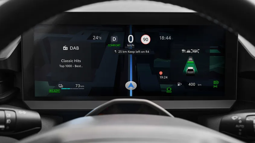 تم تحسين الرؤية عبر خفض لوحة القيادة 40 مم وجعل الزجاج الخلفي أكثر عمودية. مساحة التخزين الخلفية تتجاوز 500 لتر مع مكان مخصص لإخفاء كابلات الشحن.