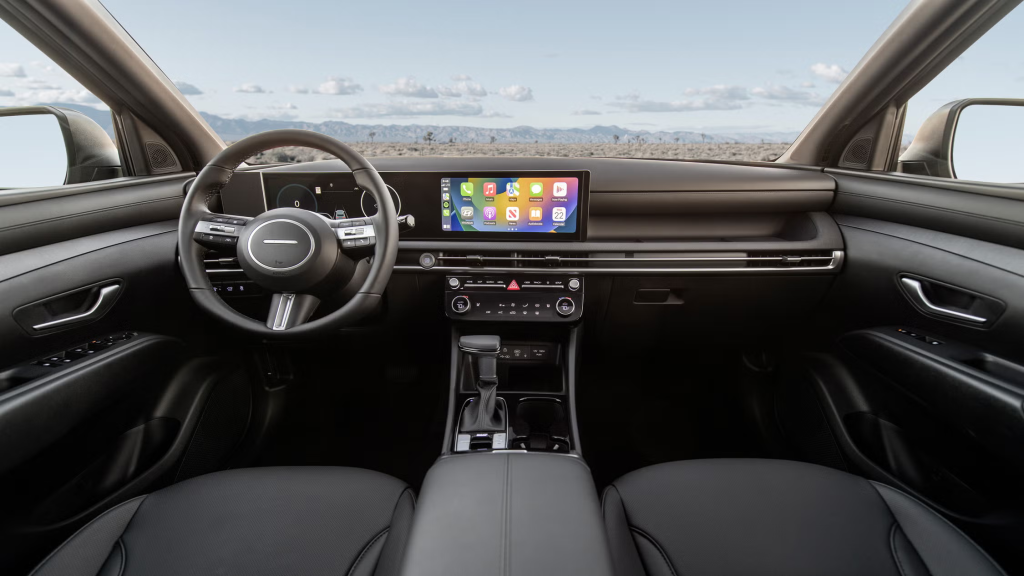 حصلت هيونداي توسان 2026 على تحديثات تصميمية ملحوظة تشمل واجهة أمامية أكثر جرأة مع شبك إضاءة LED متصل، وخطوط جانبية حادة تمنحها مظهراً عصرياً ومميزاً. من الداخل، تتميز بلوحة قيادة رقمية بالكامل مع شاشة عرض مركزية بقياس 10.25 بوصة ومواد تشطيب عالية الجودة.